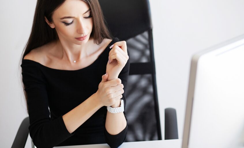 Heart pain. Health healthcare care concep. Closeup on business woman with wrist pain